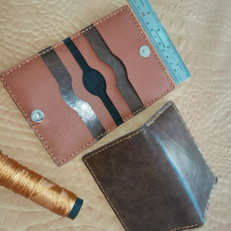 کیف کارت چرم مصنوعی کاملا دست دوز وباکیفیت وپرکاربرد رنگ قهوه ای،